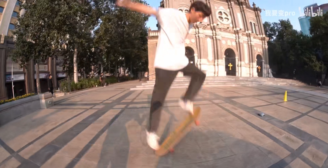 北京王府井教堂,是滑板之地,也是婚纱拍摄和旅游观光所在。图源 B站up主“我要变pro”