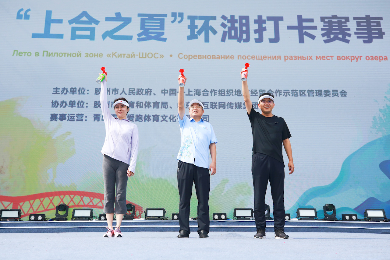 7月31日9:00,上合之夏环湖打卡赛活动在上合示范区如意湖公园准时开始,300余名参与人员从如意湖公园入口出发,通过一场妙趣横生的体育活动,领略如意湖公园上合风情的同时,展示上合组织创新、协调、绿色、开放、共享的发展理念,为加速上合示范区体育+旅游产业融合发展夯实坚实基础。