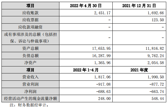 值得一提的是,2021年至今年第一季度,江西纬科均为亏损状态,且亏损幅度还在增加,现金流也出现收紧。