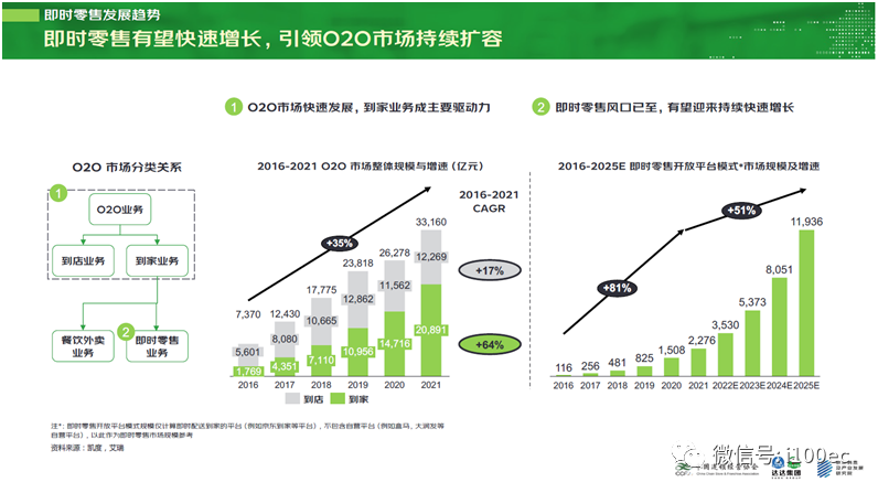 白皮书指出,O2O到家业务成为近年来零售行业重要驱动力,2016-2021年的年复合增长率达到64%。作为O2O到家业务重要组成部分,即时零售风口已至,迎来快速增长。