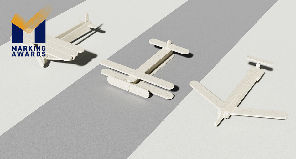 这款糖果棒签使用的材料是小麦秸秆——一种被广泛应用于餐具中的天然环保材质,易在自然界中被微生物分解,不会造成二次污染。同时,充分利用农田中的废弃秸秆,减少了焚烧秸秆对环境造成的污染。设计上通过给棒签增加卡扣等简单的结构,让儿童在食用完糖果后,可以通过拼接的方式,将棒签组合成不同形式的飞机模型,延长趣味的同时增加可用性。
