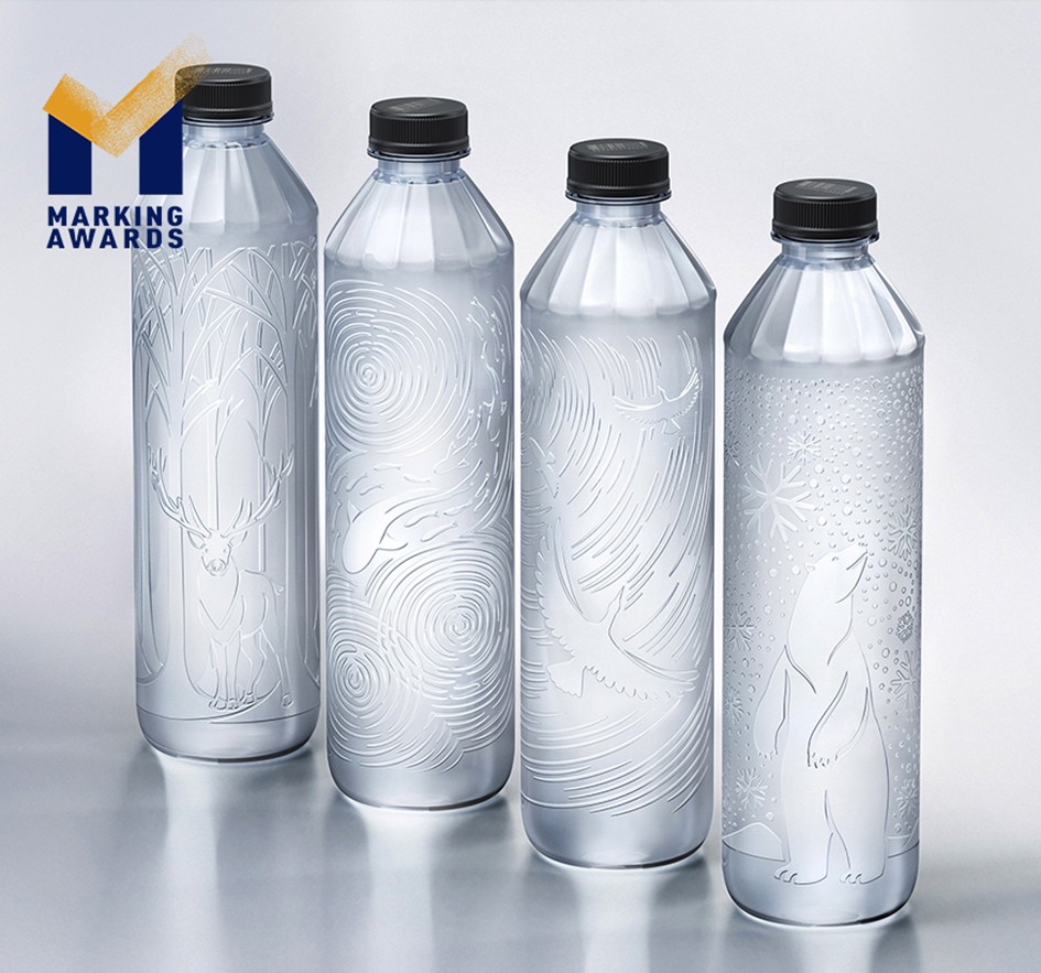 光去除标签还不够,这款包装专为无标签水瓶设计,将所有法律要求的信息压印在瓶身上,并在瓶盖上印上条形码。产品由100%可回收的PET制成的,有利于再回收利用。瓶身上一系列的设计图案展示了自然界中趣味盎然的动物栖息地,例如鹿行于森林、北极熊立于雪地、鸟翱翔于天空等,不仅展现环境之美,更传递了保护环境的品牌使命。