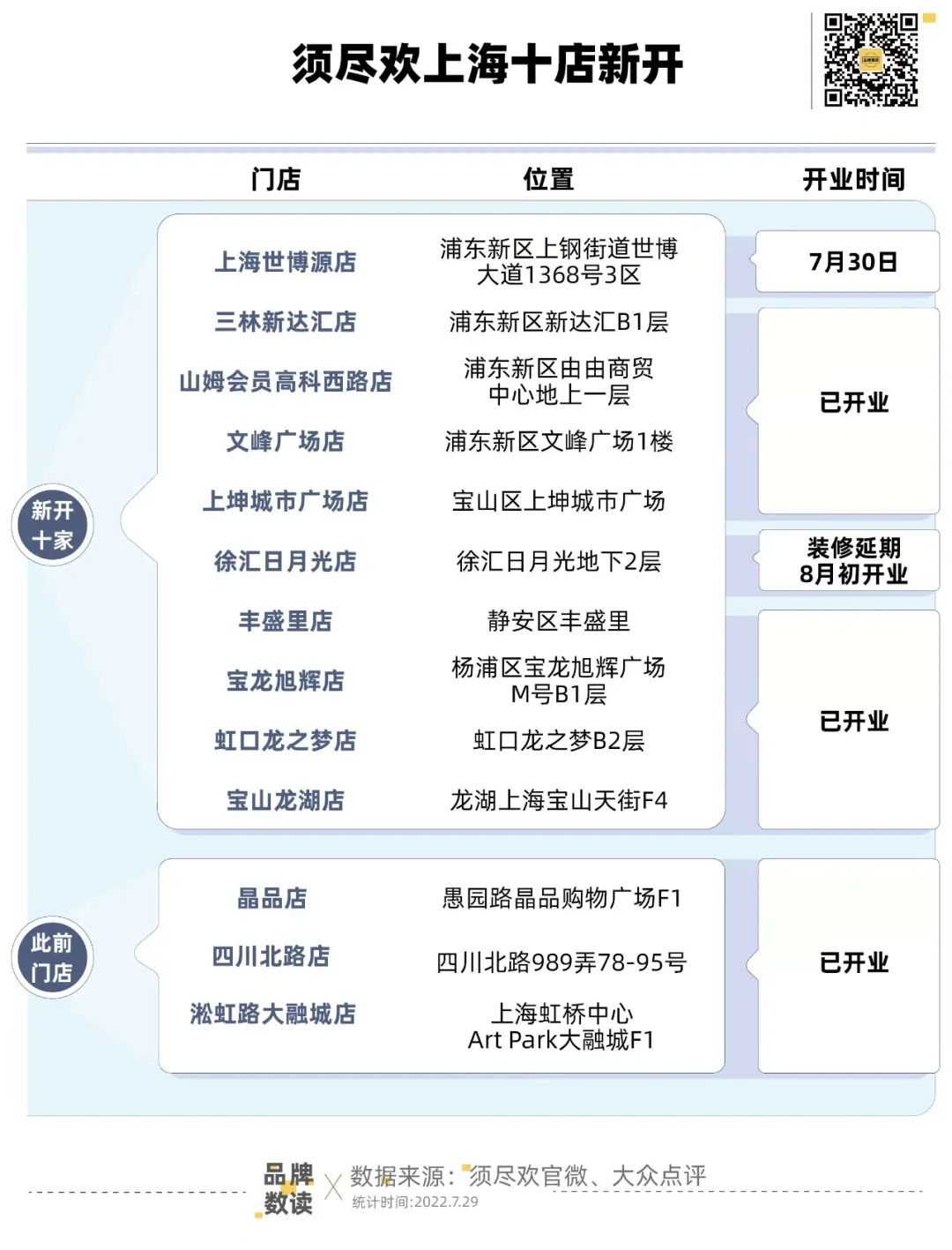 注:“此前门店”仅指上海此前已开业、现在仍旧营业的门店,根据大众点评,须尽欢此前其他城市的门店仅剩成都新世界店营业
