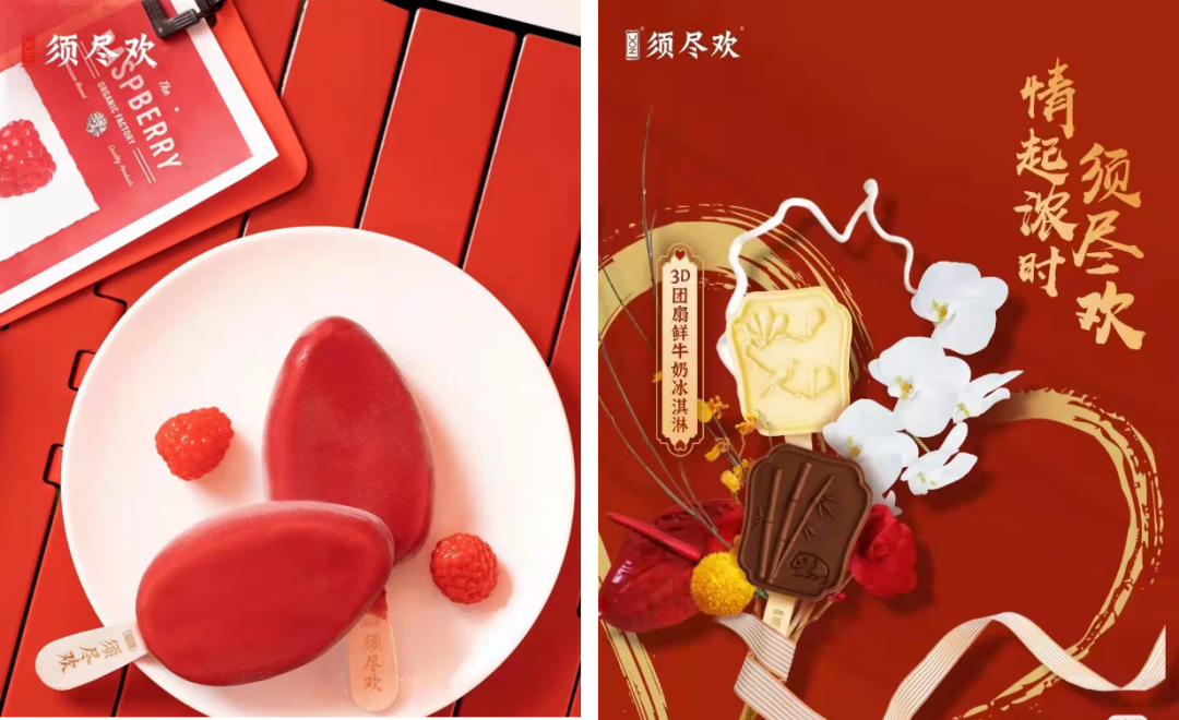 从传播上来看,哈根达斯早期以“爱她,就带她去吃哈根达斯”迅速和爱情相绑定出圈,同时通过线下门店,商超专柜等方式来凸显自己的高端定位。但目前来看,须尽欢虽然也有意进军高端市场,但在传播上主要以“国潮”和“联名”来驱动品牌增长,如推出“故宫”联名款,强调国韵等概念。在国货品牌整齐划一地挖掘国潮概念的当下,简单的运营国潮元素,很难让品牌形成更加清晰的消费者认知。