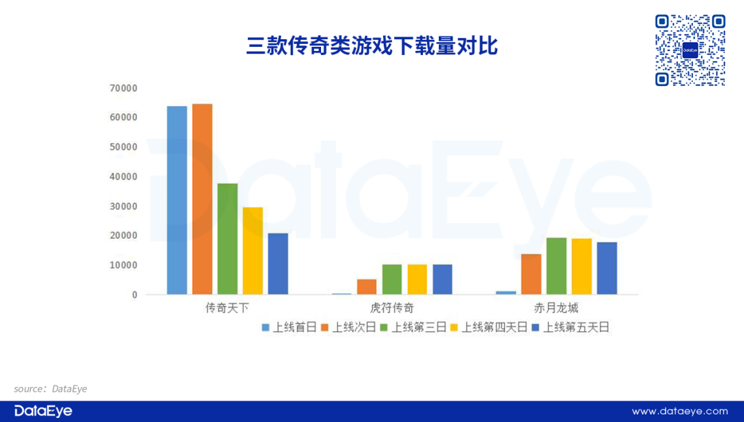 《虎符传奇》《赤月龙城》均属于相对“常规”的老传奇游戏,iOS首日下载量较低,随着买量投入,下载量相应增加,但上线爆发阶段仅有万次下载。