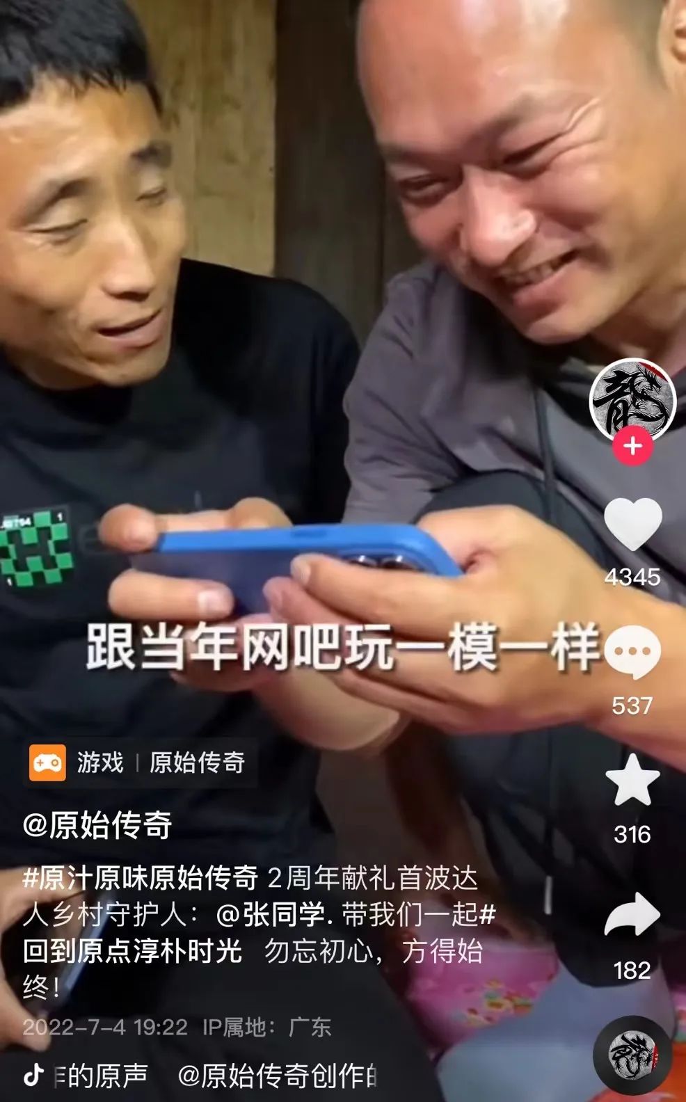 事实上,今年越来越多传奇品类,尝试通过达人视频营销的方式。之前,《原始传奇》则邀请多位短视频平台达人,通过视频内容呈现传奇IP情怀。如此一来,项目组可以通过达人的创作让“卖情怀”变得具体,同时也通过短视频接触更多泛用户群体。