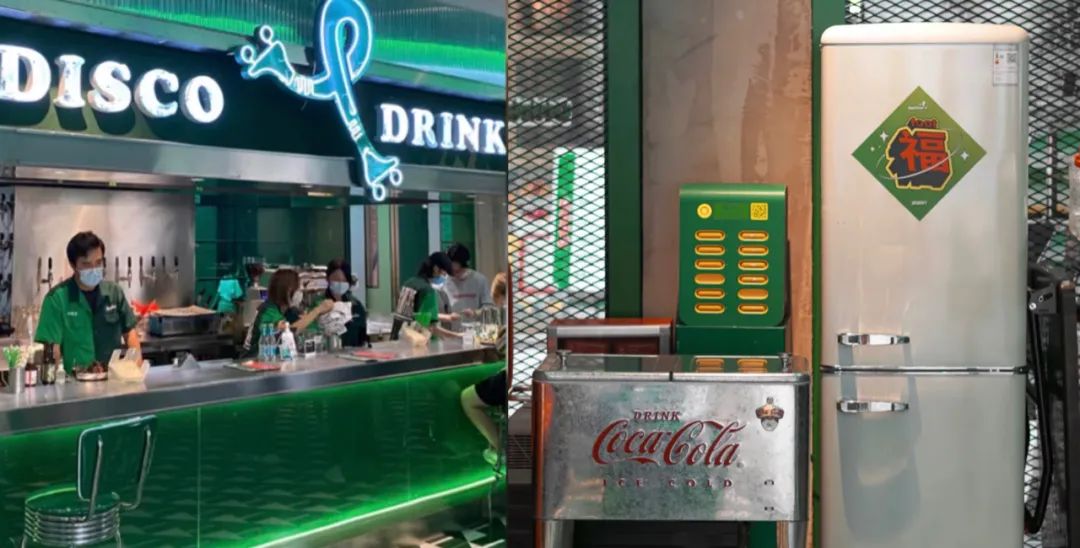 “窗口有笑脸”的上清寺店,选择了亮眼的橙色;广州的急急脚咖啡选择了美式复古绿为主色调,同时搭配创意细节,打造新奇感,吸引不少年轻消费者前去拍照打卡。