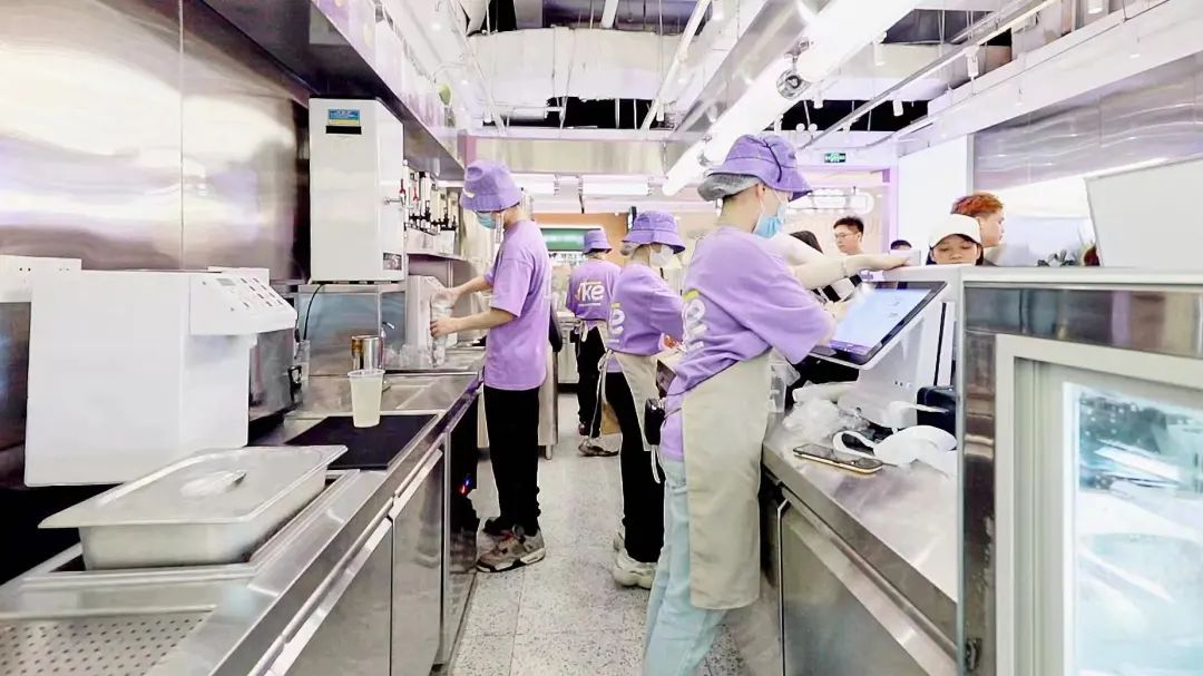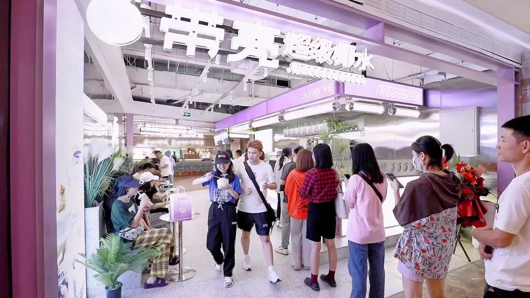 选择紫色作为品牌主题色,更具有夏日清凉感,门头、员工帽子工装统一使用主题色,增添视觉冲击力;