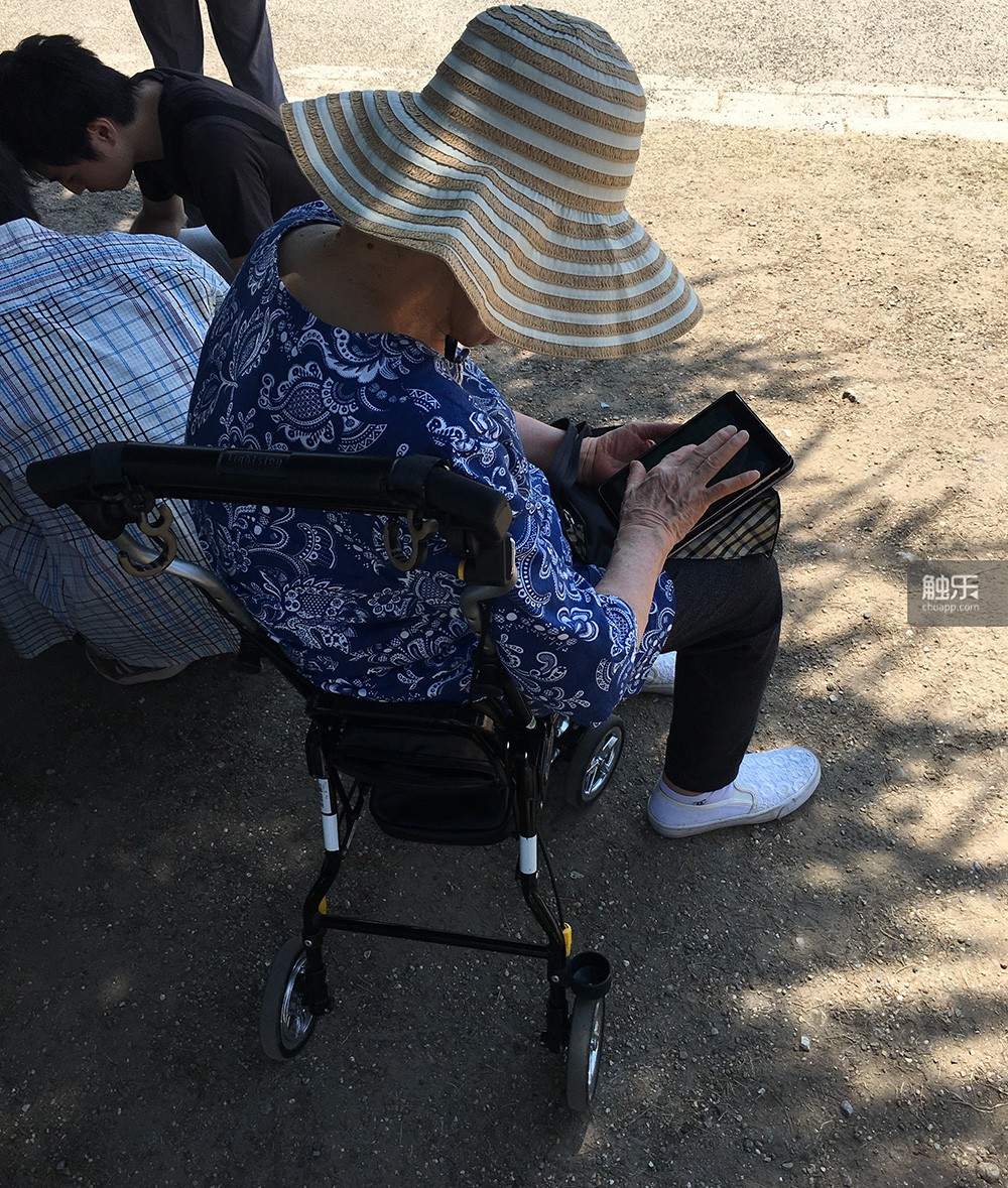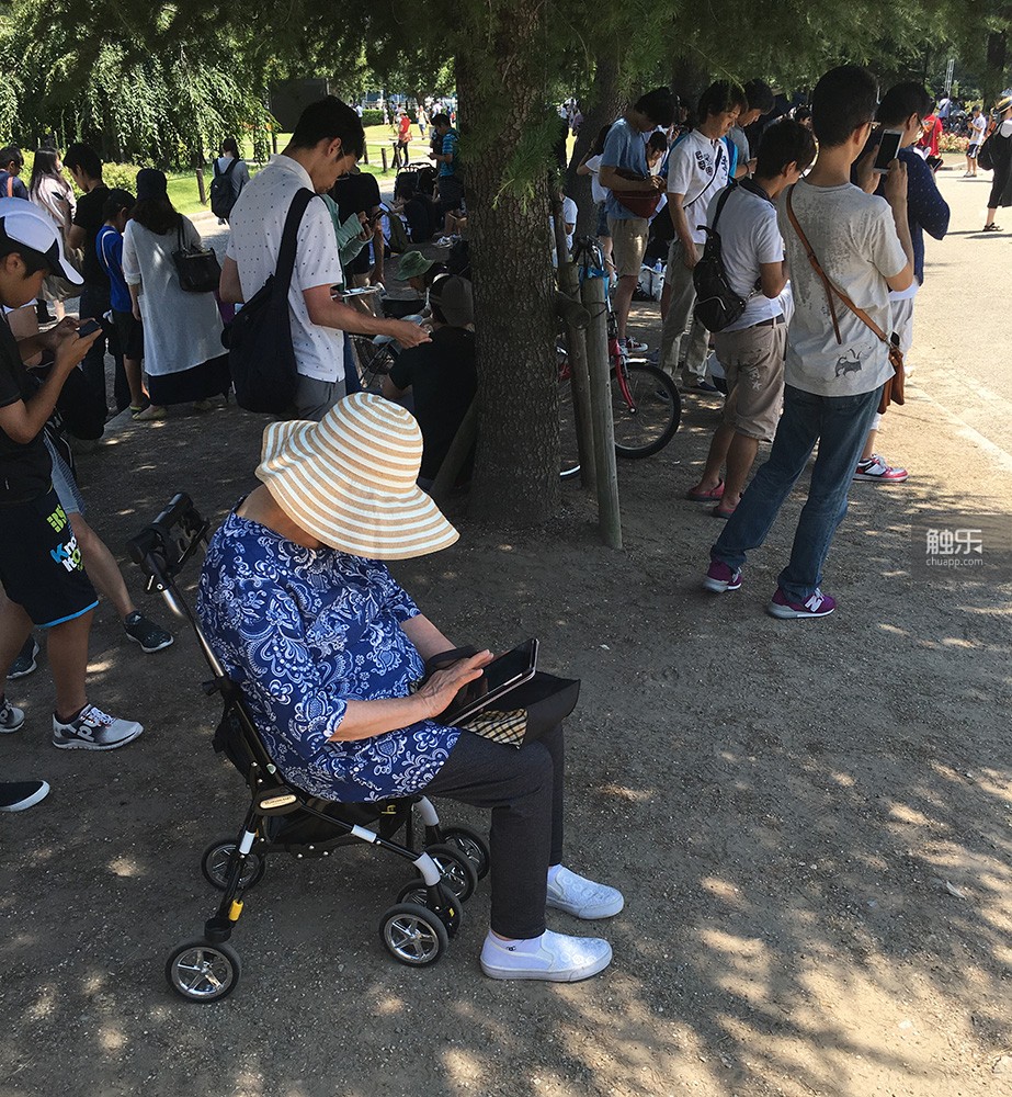 有位老爷爷淡然地坐在这一群“怪人”边上,不带有任何情绪的看着眼前这群着了魔一样死盯着屏幕的人。老人家多半无法理解眼前年轻人们所热衷的新事物到底魅力何在,表情平静不带有一丝厌恶也不包含一丁点儿感兴趣的情绪,只是单纯地看着这十来天突然多出来的一群又一群新同伴。