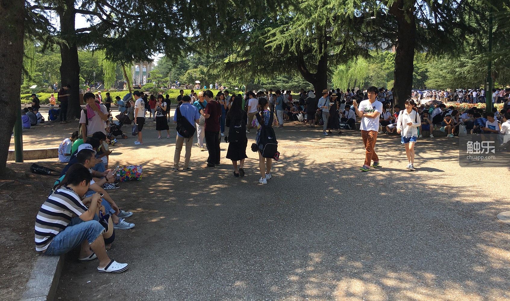 但其实我只是一个从20年前就对这一全球顶级IP抱有充分的尊敬但却没多少兴趣的人,对于《精灵宝可梦GO》的高关注度也只是出于工作需要。我原本只是想去东京支持一下自己喜欢的那个跌入职业生涯冰点的小偶像,看一场并不是她主演的舞台剧;然后和几位朋友一起看看隅田川花火大会,顺便抓几只小精灵而已。在香港-东京-名古屋-大阪-香港画了个圈只是一次日程安排事故,前往圣地也只是周日早晨无所事事,顺手刷到了昨晚几名高中生在鹤舞公园通宵玩游戏被警察带走教育的新闻。