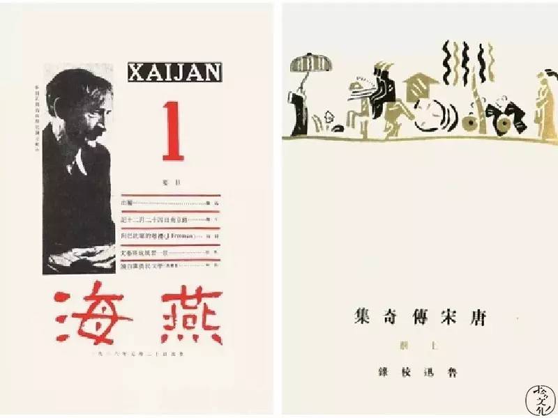 鲁迅为《海燕》、《唐宋传奇集》设计的封面