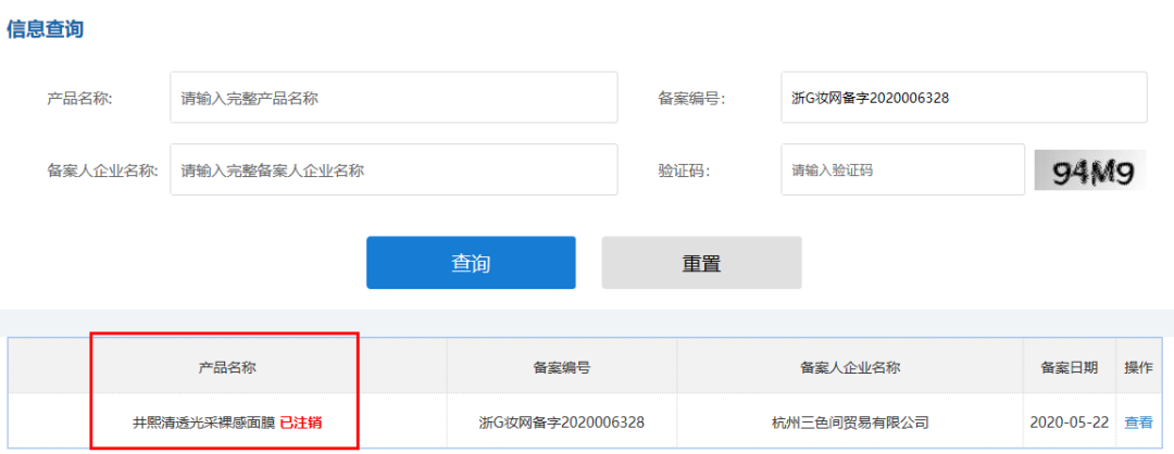 根据备案信息,熙清透光采裸感面膜(浙G妆网备字2020006328)已于2021年12月21日注销。备案人企业为杭州三色间贸易有限公司。