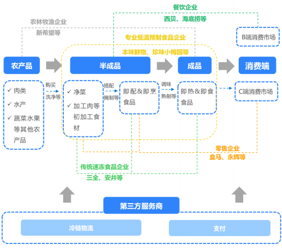 在分析这个问题之前,我们要理清预制菜To C业务中的主要参与者和主要产品。