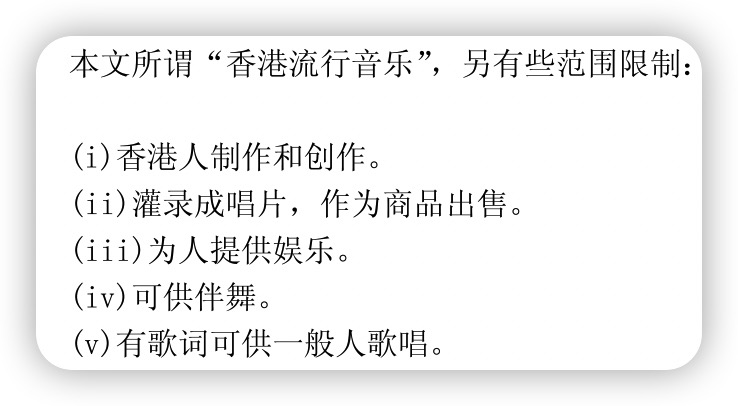 黄霑在其2003年博士学位论文《粤语流行曲的发展与兴衰:香港流行音乐研究》中,将港乐定义为: