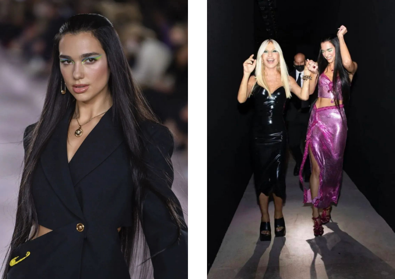 Donatella Versace曾表示,“Versace是最早接纳街头文化的奢侈品牌,上世纪80年代的嘻哈歌手们发扬了它奢华炫目的基调,因此Versace一直流淌着音乐的DNA。而如今Dua Lipa在音乐和时尚领域的种种建树,与Versace在音乐领域的关注和拓展精神也恰好相符。”
