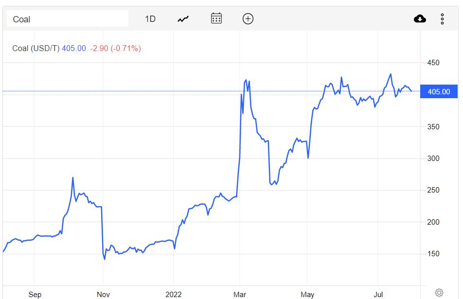 与此同时,夏季极端高温以及俄罗斯减少供气加剧了欧盟的天然气危机,包括德国在内的多国重新增加煤炭使用,进一步推高动力煤价格。