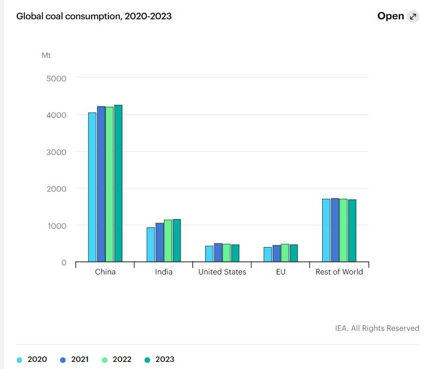 在全球需求上涨同时,IEA提醒,煤炭也是二氧化碳主要排放源之一,煤炭消费增加也可能加剧气候变化。