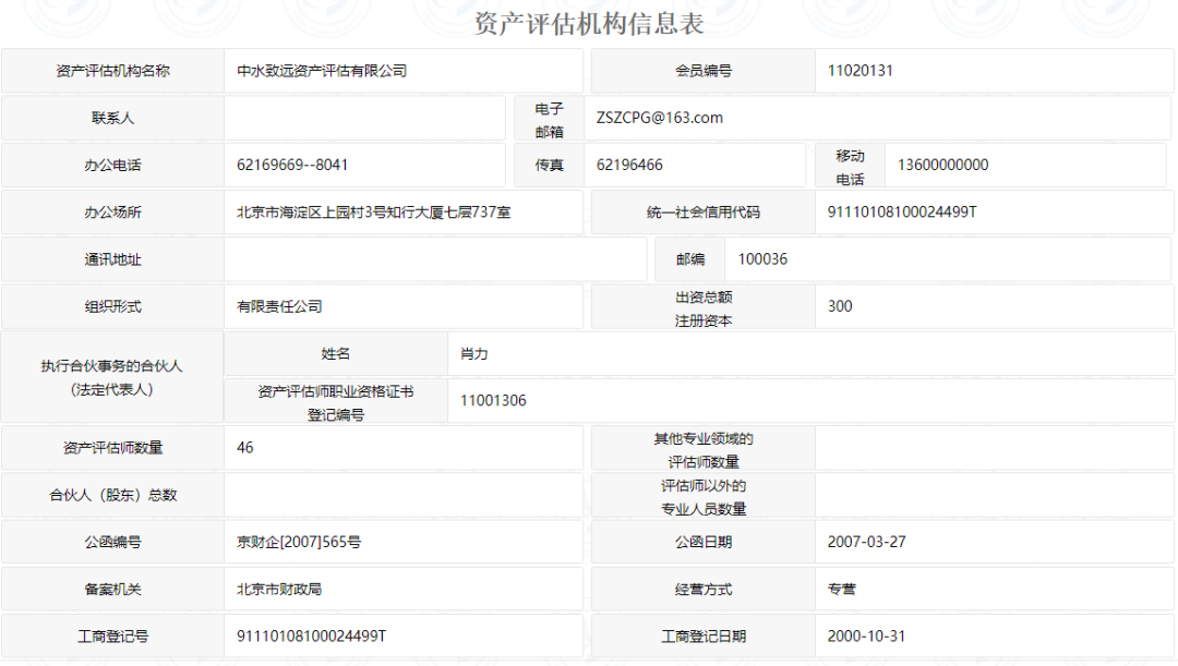 据中国资产评估协会显示,中水致远前身为中水资产评估事务所,1996年成立,1999年更名为中水资产评估有限公司(下称“中水资产”),2011年,中水资产与安徽致远资产评估有限公司合并,变更为中水致远资产评估有限公司。