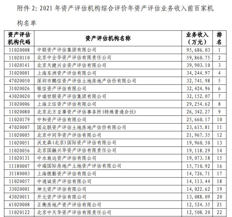 据中国资产评估协会发布的2021年评估机构业务收入前100排名来看,中水致远以1.9亿元收入位列15名。