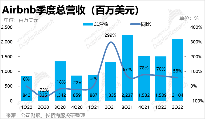 北京时间8月3日美股盘后,Airbnb爱彼迎公布了2022年二季度财报。总的来看,本度Airbnb的营收和利润释放仍保持着强劲增长,但与市场预期基本一致。但间夜预订量本季表现和下季指引都不及预期,不禁让市场担忧出行旅游需求能否保持强劲。海豚君猜测,这也是Airbnb在业绩公布后,股价反而大跌8%的主要原因,财报详细要点如下: