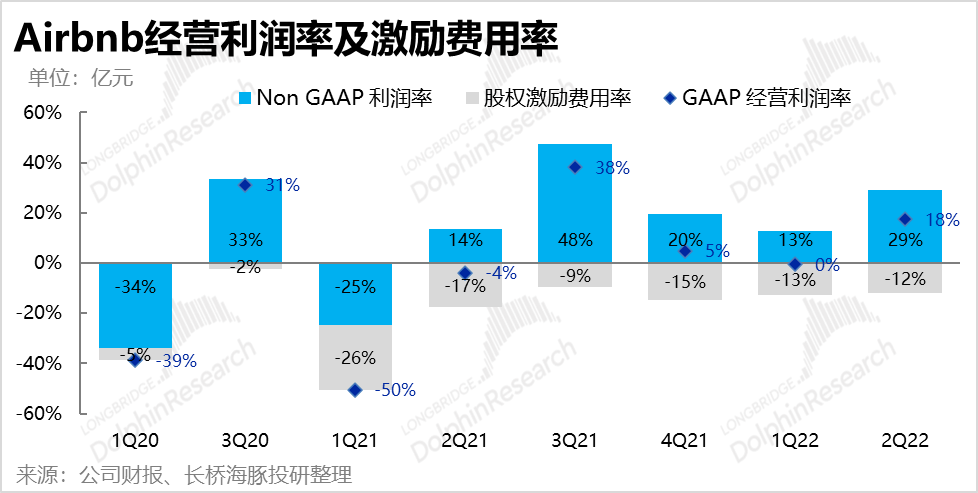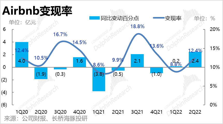 由于价量对冲后,本季 Airbnb 的GBV与预期基本一致,公司在营收端的表现也完全在市场的预期中。具体来看,公司本季实现收入21.04亿元,市场预期则是20.95亿元。不过在变现率提升的驱动下,本季营收增速仍达58%,增速虽略有放缓,但仍在高速增长期。