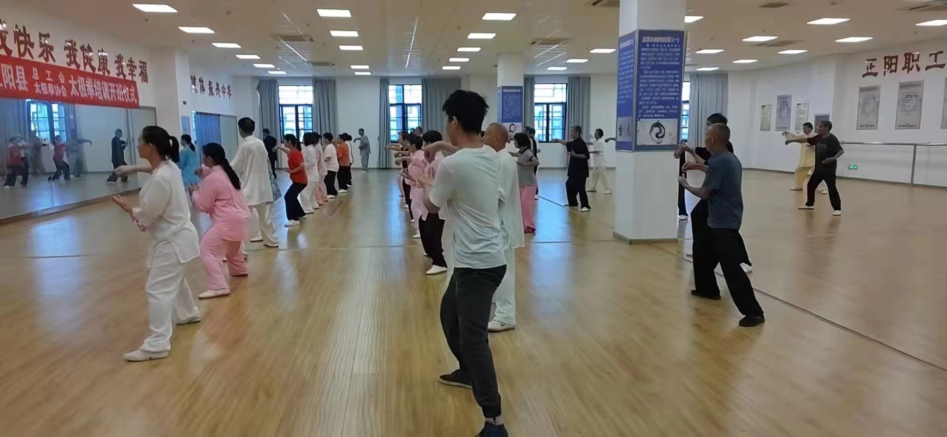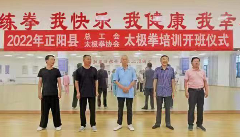 正阳县总工会和正阳县太极拳协会研究决定:从8月1日建军节日起,在正阳县文体中心(工人文化宫)二楼太极拳馆举办“陈氏太极拳新架一路(83式)培训开班仪式”,培训时间暂定一个月,每天早6奌至7奌半。授课的四名教练都是陈家沟陈氏太极拳功夫学校校长陈志伟亲传的。