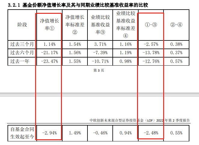 财报显示,中欧创新未来2022年上半年共亏损25.31亿元,最新单位净值跌至1元以下。