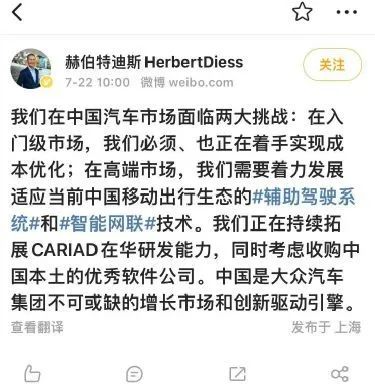 另一方面,迪斯寄希望于持续押注中国市场,让CARIAD成立其中国子公司,让中国成为其软件破局的新出口。