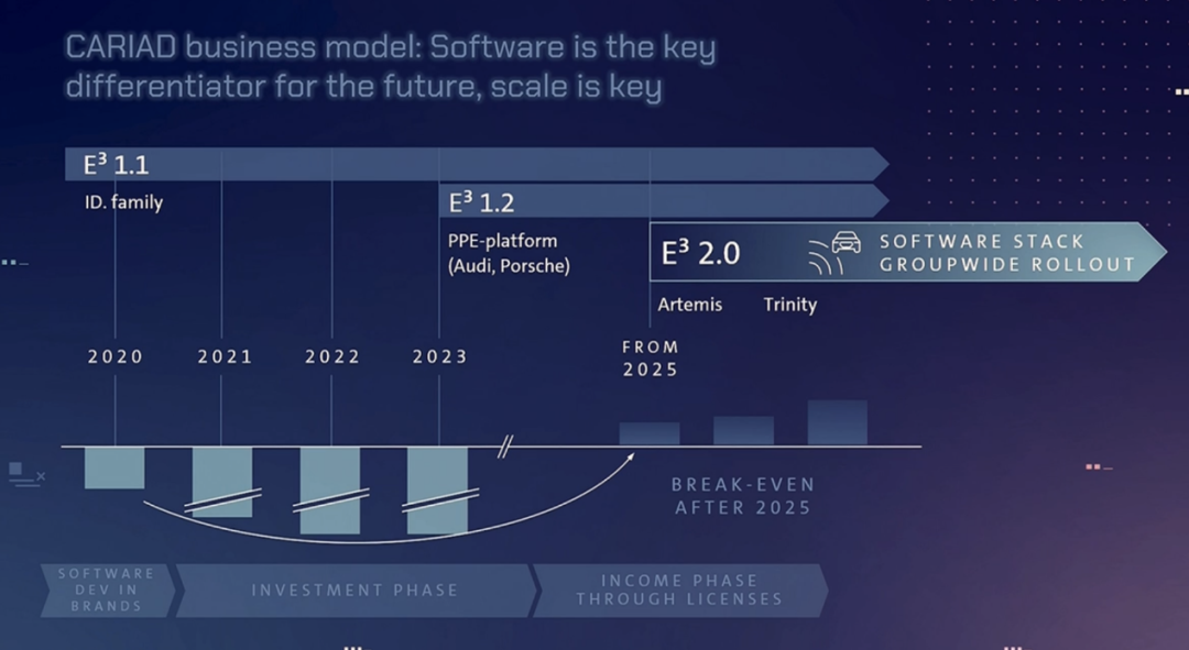关于迪斯卸任CEO后,CARIAD未来的走向成为业内关注的焦点。在日前的财报会议上,大众集团首席财务官阿诺 · 安特里茨(Arno Antlitz)称,“CARIAD的战略方向两年前就已经确定,大方向不会调整。但基于目前正在开发的E1.1、E1.2和E2.0版本,集团内部正准备分开开发。”