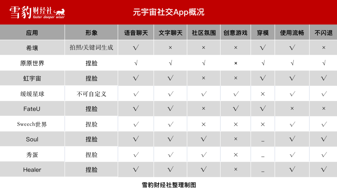 雪豹财经社下载并体验了多个元宇宙社交App,从画面音效、社区氛围、使用体验等多个维度对以下9款进行重点测评,一探元宇宙社交的真面目。