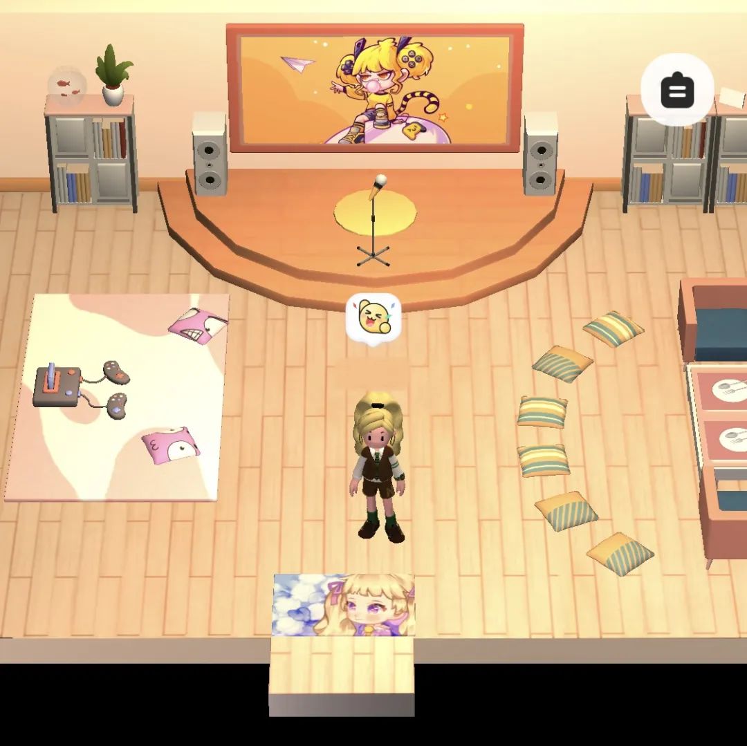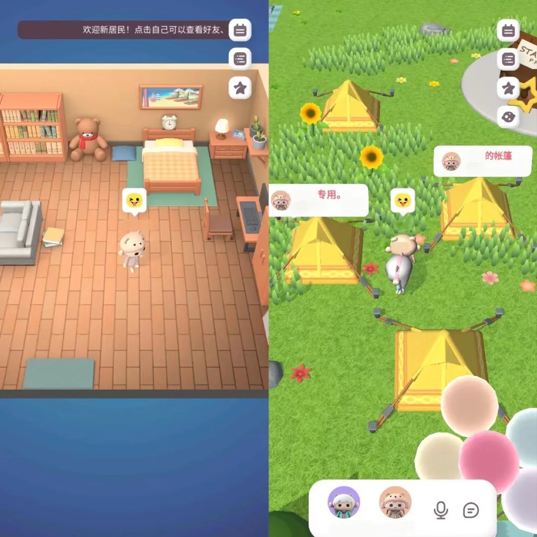 缓缓星球的界面和原原世界类似,都是可爱的Q版画风,进入应用时可选择的形象有限,男生和女生各有6款形象可选,也不支持捏脸等自定义功能。好处是一进入就会拥有一个自己的小家,有沙发、桌椅和床可供坐卧。