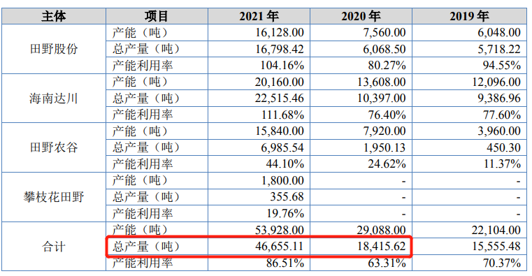 内卷、同质化之下,供应商们的产量得以成倍扩增。田野股份2021年产量扩张近3倍,德馨食品更是连续三年都保持着超过100%的产能利用率。