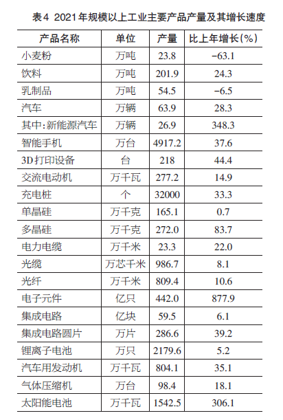 数据更能说明问题。2021规模以上工业主要产品产量中,除了“小麦粉”、“饮料”、“乳制品”等生活必需品外,剩下的都是技术含量高的现代工业品。估计“千年基友”洛阳看了会很生气,“说好了一起做文艺,你却偷偷搞理工”。
