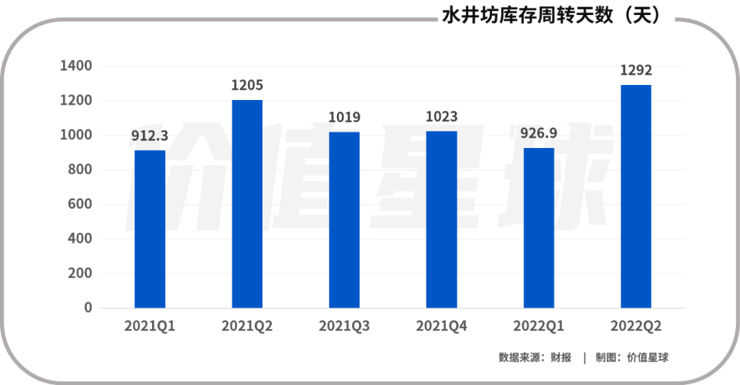 二季度,水井坊的存货周转天数为1292天,与去年同期1205天相比,一年间增加了近三个月。