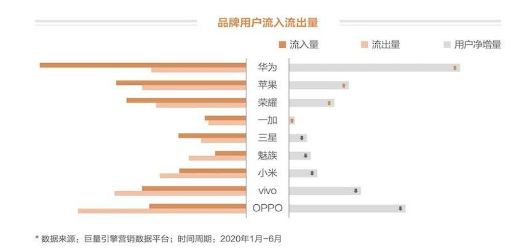 根据巨量引擎发布的智能手机行业白皮书,在独立之前的2020年上半年,荣耀就是国内仅有的三家实现品牌用户净流入的手机品牌之一,另外两家分别是华为和vivo。这个数据足以表明,荣耀拥有比小米、OPPO等竞争对手更强的品牌吸引力。