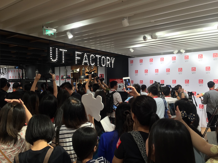“坤哥......坤哥…….坤哥……”周六的下午,优衣库淮海中路旗舰店顶层挤满了粉丝。他们都是为了看一眼偶像陈坤而来。此刻,陈坤站在购物区过道临时搭出的台上,穿着黑色T恤、银灰色运动外套搭配黑色针织束脚裤,一身优衣库。