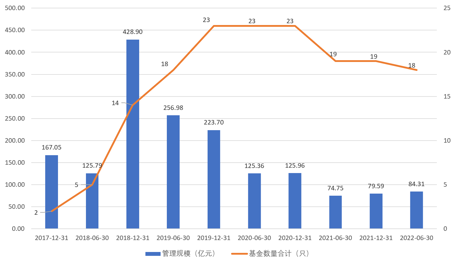 2017年1月,人保资产公募基金管理业务资格获批。凭借着货币基金和债券基金的表现,2018年四季度末,人保资产公募基金管理规模曾达到428.90亿元的巅峰。但是债基踩雷、新基难募、人才流失等等问题近两年困扰着人保资产,最新管理规模已不足百亿,仅有84.31亿元。