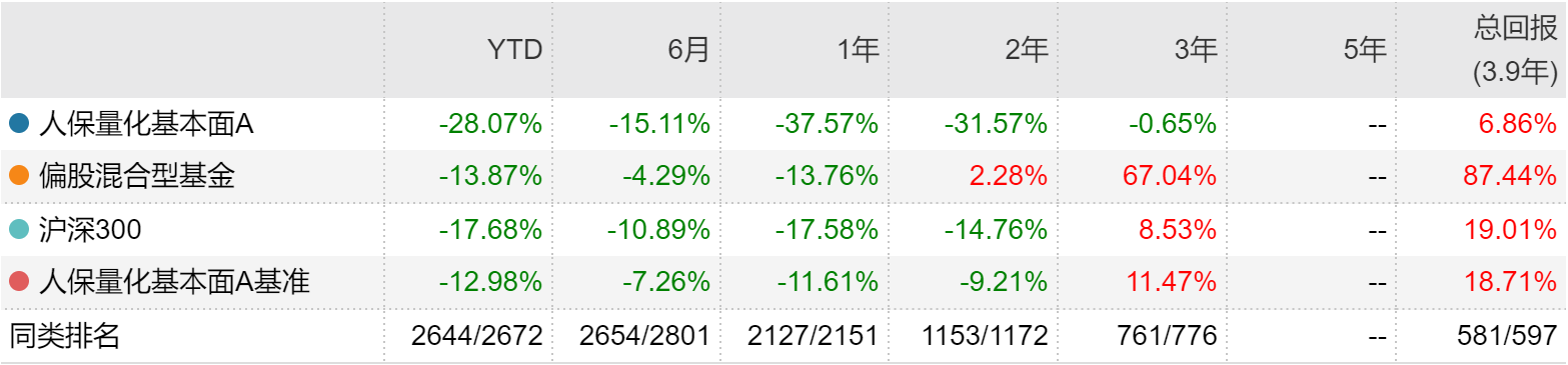 与人保优势产业混合相似,人保量化基本面也依靠机构投资者的支持,与业绩比较基准之间的差距巨大。