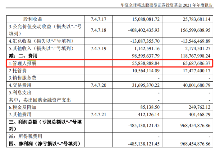 自媒体“面包财经”梳理发现,自华夏全球股票成立的2007年10月至2021年末,获得的报酬合计约28亿元,其中2021年华夏基金作为基金管理人从该产品获得的报酬约5583.9万元,2020年则为6568.7万元。