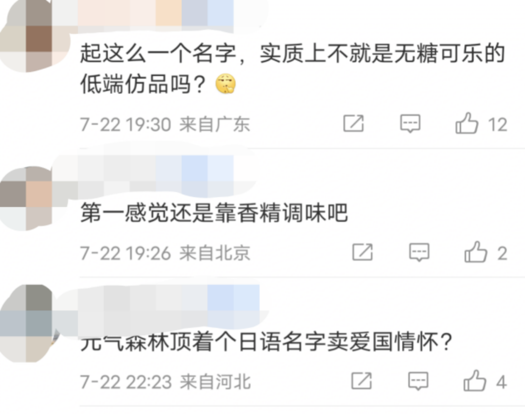然而,在该词条下,除了网友对新品是“无糖可乐低仿品”的调侃,还有“顶着个日语名字卖爱国情怀”的评论。