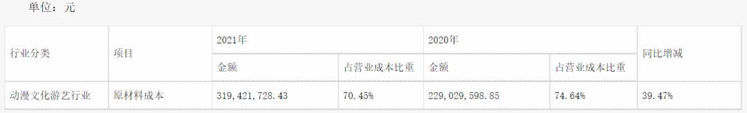 其年报就显示,“动漫文化游艺行业”的“原材料成本”为3.19亿元,占营业成本七成以上。虽然在年报中,华立科技并未对“原材料成”做详细说明,但我们可以理解为版权代理费为主的成本。