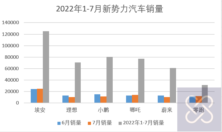 图片:2022年7月新势力销量表现 锦缎研究院制图