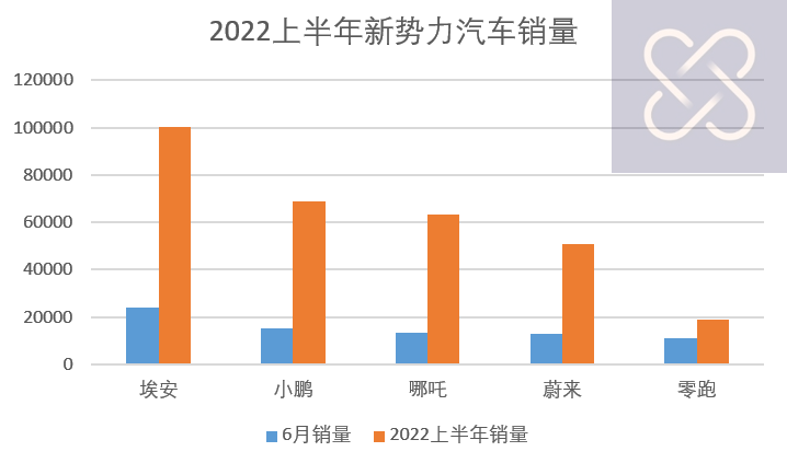 以2022年上半年为时间节点,广汽埃安销量为100251辆,同比理想60403、小鹏68983、蔚来50827的销售数据,埃安在2022上半年的销售总量超过目前表现最好的小鹏30%。