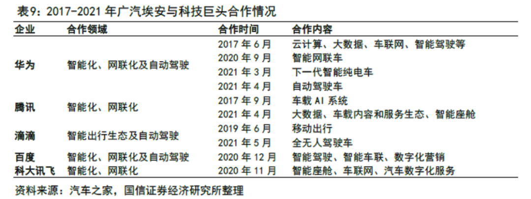 图片:中国科技巨头企业纷纷与广汽埃安合作 来源:国信证券