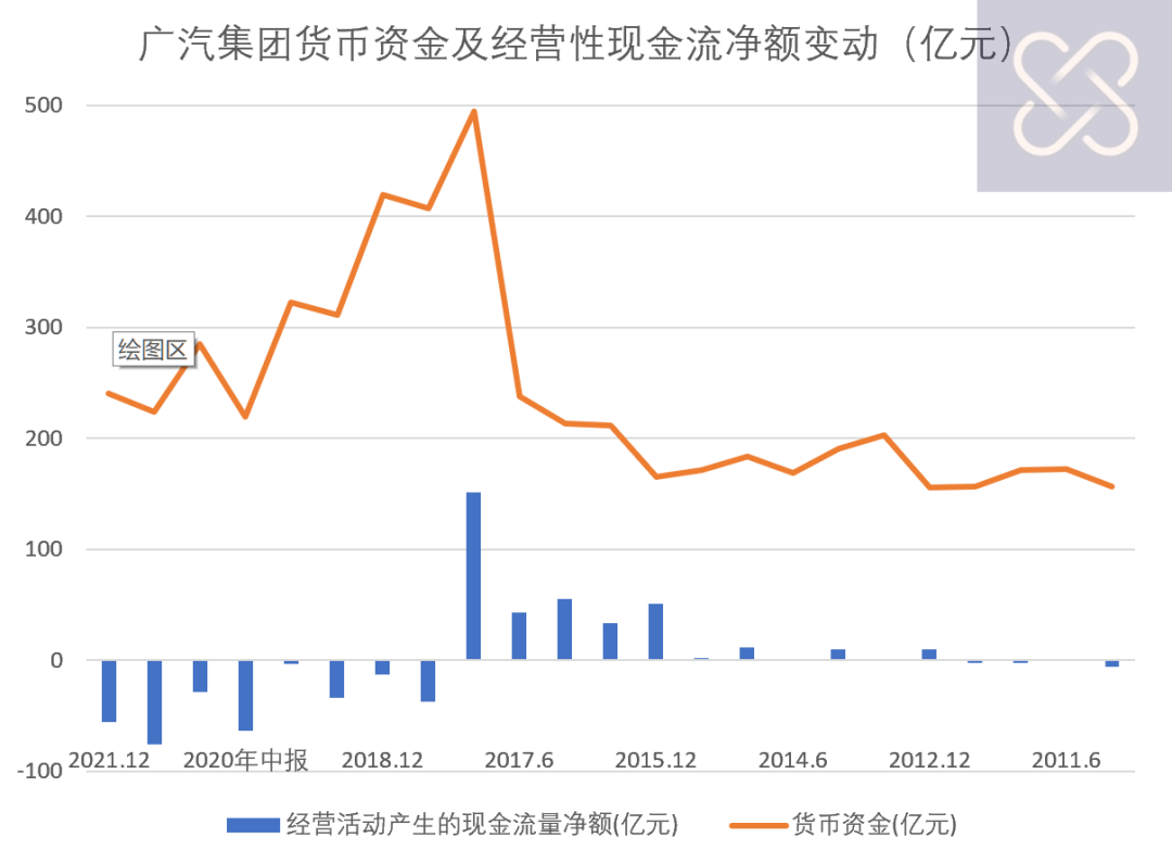 图片:广汽经营性现金流净额及货币资金变化情况 锦缎研究院制图