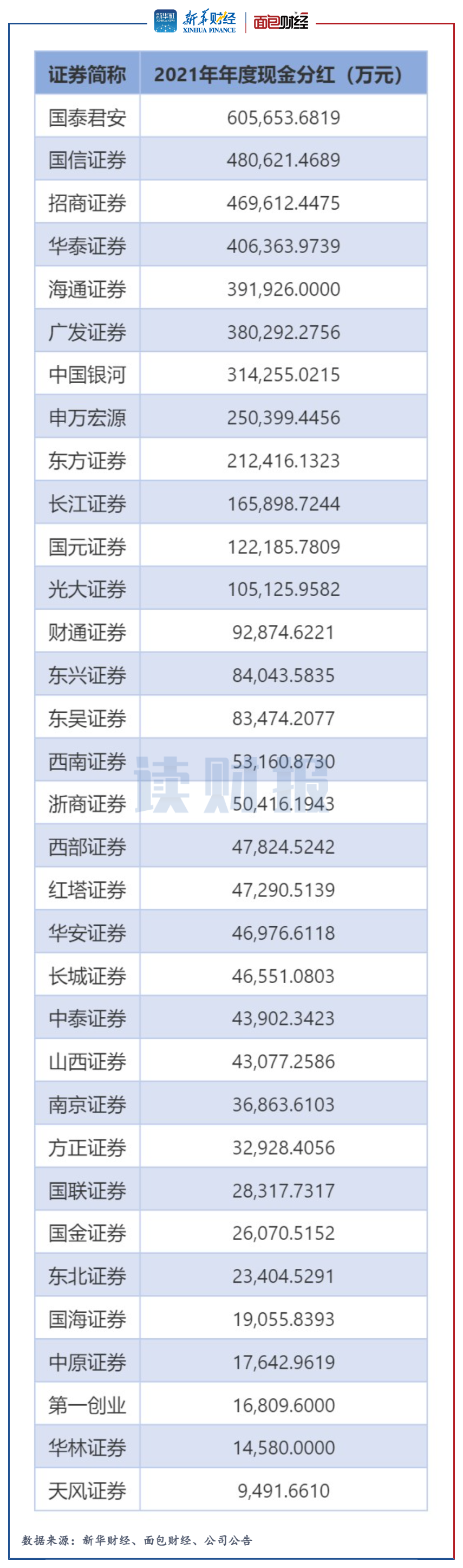 此外,国泰君安派发现金红利约60.6亿元,在已实施2021年利润分配的上市券商中金额最高。2021年,兴业证券和太平洋将不进行分红。