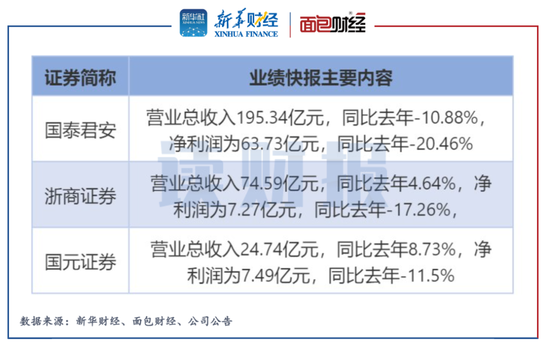 浙商证券和国元证券的营收虽同比上升,但增收不增利,净利润同比分别下降17.26%和11.5%。