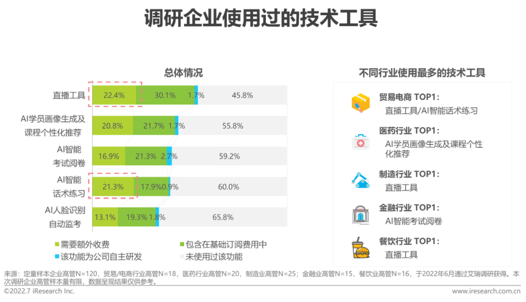 企业对直播工具和AI智能话术练习的付费使用率更高