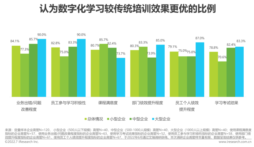 八成企业认为数字化学习在各方面均较传统培训效果更优
