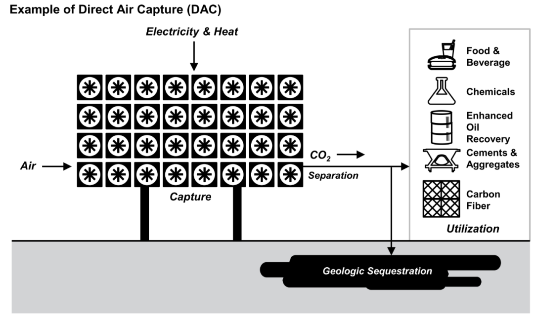 封存——二氧化碳被封存在地质结构中(例如废弃油井或盐碱地)或被利用,前者需要持续监测以确保封存的永久性。